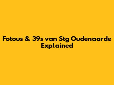 Fotous & 39s Van Stg Oudenaarde Explained