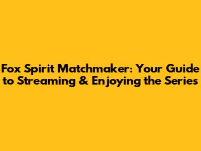 Fox Spirit Matchmaker: Where To Stream & Dive In!