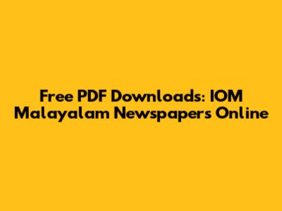 Free PDF Downloads: IOM Malayalam Newspapers Online