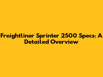 Freightliner Sprinter 2500 Specs: A Detailed Overview