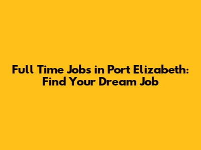 Full Time Jobs In Port Elizabeth: Find Your Dream Job