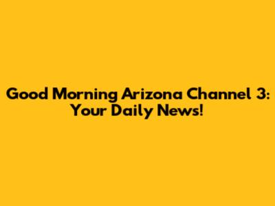 Good Morning Arizona Channel 3: Your Daily News!