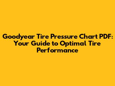 Goodyear Tire Pressure Chart PDF: Your Guide