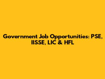 Govt Jobs: PSE, IISSE, LIC & HFL Opportunities