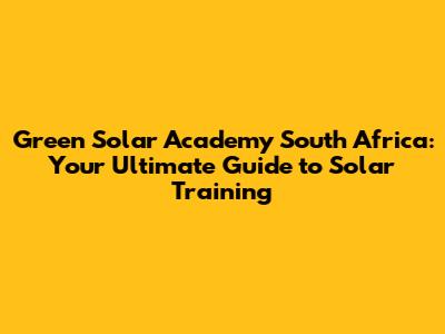 Green Solar Academy In South Africa: Your Top Guide