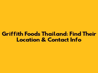 Griffith Foods Thailand: Find Their Location & Contact Info