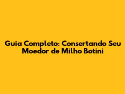 Guia Completo: Consertando Seu Moedor De Milho Botini