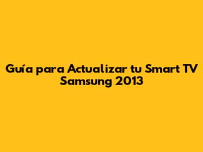 Cómo Actualizar tu Smart TV Samsung 2013: Guía Paso a Paso