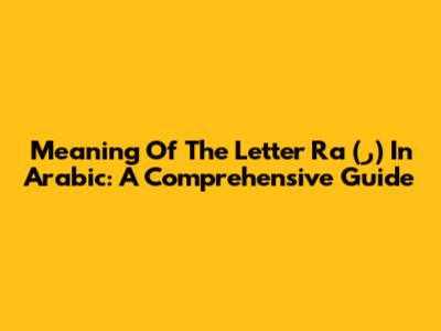 Meaning Of The Letter Ra (ر) In Arabic: A Comprehensive Guide