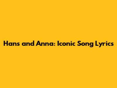 Hans And Anna: Iconic Song Lyrics