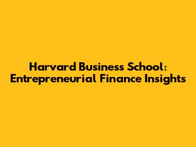 Harvard Business School: Entrepreneurial Finance Insights