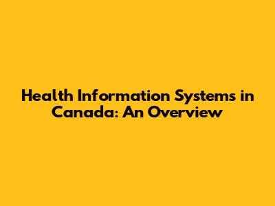 Health Information Systems In Canada: An Overview
