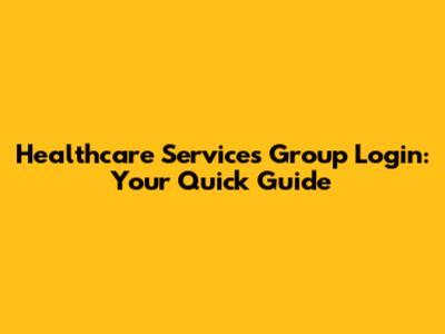 Healthcare Services Group Login: Your Quick Guide