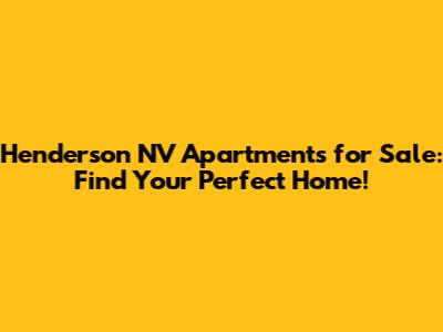Finding the perfect Henderson NV apartments for sale requires careful research, planning, and consideration. By understanding the different neighborhoods, types of apartments, and factors to consider, you can make an informed decision and find the ideal place to call home. Owning an apartment in Henderson offers numerous advantages, including building equity, tax benefits, and pride of ownership. With the right preparation and guidance, you can navigate the buying process smoothly and successfully. So, start your search today and discover the vibrant and exciting lifestyle that Henderson has to offer!