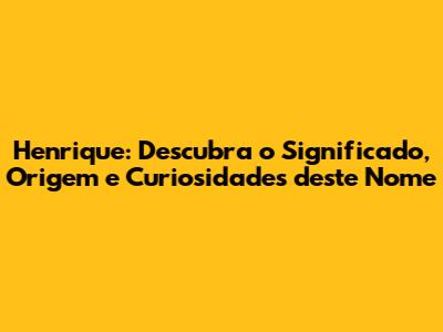 Hey guys! Ever wondered about the name Henrique? It's a pretty common name, right? But have you ever stopped to think about where it comes from, what it means, or maybe some cool facts about it? Well, buckle up, because we're about to dive deep into the world of Henrique! This article is your ultimate guide to everything Henrique, from its historical roots to its modern-day usage. We'll explore its meaning, trace its origins, and uncover some fun trivia that'll make you appreciate this name even more. Whether you're a Henrique yourself, know someone named Henrique, or are just curious, this is the perfect place to learn all about it. Get ready to have your knowledge expanded and maybe even find a new appreciation for this classic name! Let's get started, shall we?