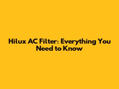 Hilux AC Filter: Everything You Need To Know