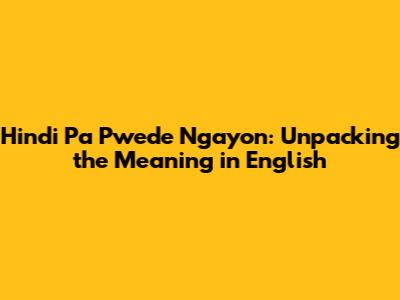 Hindi Pa Pwede Ngayon: What It Means In English