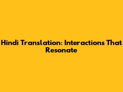 Hindi Translation: Interactions That Resonate