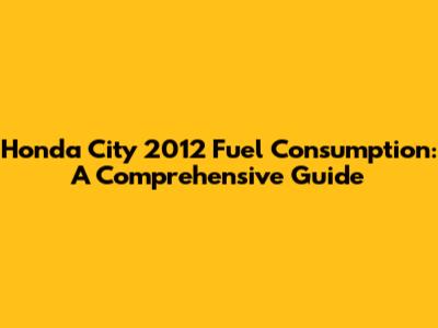 Honda City 2012 Fuel Economy: A Comprehensive Guide