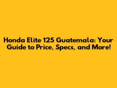 Honda Elite 125 Guatemala: Price, Specs & More!
