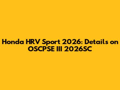 Honda HRV Sport 2026: Details On OSCPSE III 2026SC