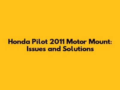 Honda Pilot 2011 Motor Mount: Issues And Solutions
