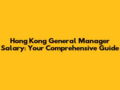Hong Kong General Manager Salary: Your Guide
