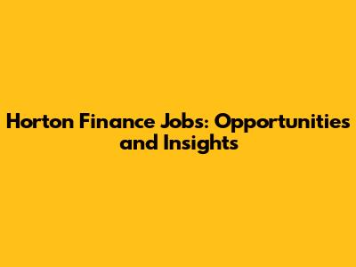 Understanding Horton Finance Jobs