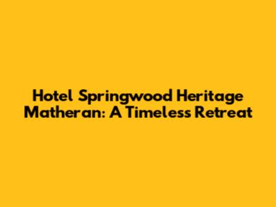 Hotel Springwood Heritage Matheran: A Timeless Retreat