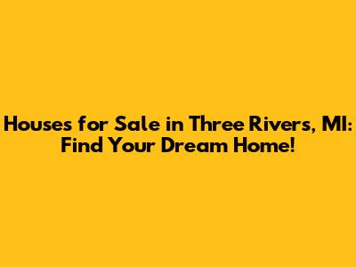 Houses For Sale In Three Rivers, MI: Find Your Dream Home!