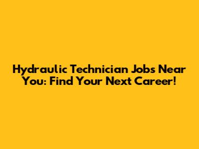 Hydraulic Technician Jobs Near You: Find Your Next Career!