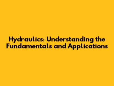 Hydraulics: Understanding The Fundamentals And Applications