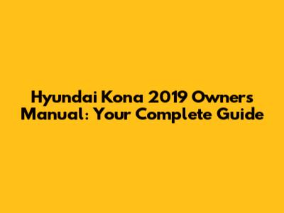 Hyundai Kona 2019 Owners Manual: Your Guide