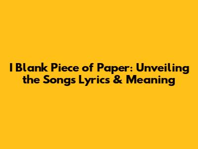 I Blank Piece Of Paper: Unveiling The Song's Lyrics & Meaning