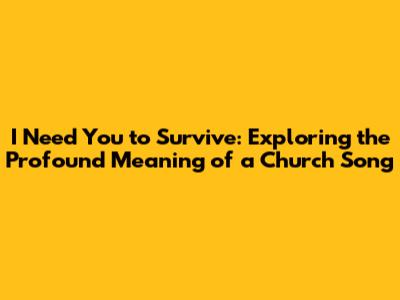 I Need You To Survive: A Deep Dive Into The Church Song
