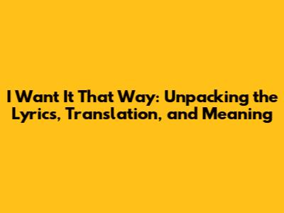 I Want It That Way: Lyrics, Translation & Meaning