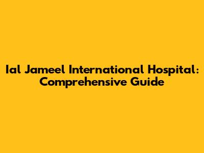 Ial Jameel International Hospital: Comprehensive Guide