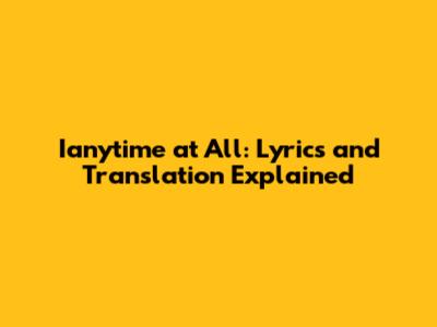 Ianytime At All: Lyrics And Translation Explained