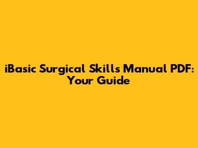 Hey guys! Are you looking to get your hands on the iBasic Surgical Skills Manual PDF? Whether you're a medical student just starting out, a resident honing your techniques, or even a seasoned surgeon looking for a refresher, this manual is an invaluable resource. In this article, we'll dive deep into what makes this manual so essential, where you can find it, and how to make the most of it to boost your surgical prowess. Let's get started!