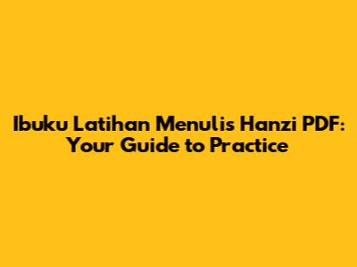 Ibuku Latihan Menulis Hanzi PDF: Your Guide To Practice