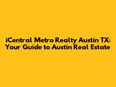 Hey guys! Looking to dive into the Austin, Texas real estate scene? You've probably stumbled upon iCentral Metro Realty, and you're wondering what they're all about. Well, buckle up, because we're about to break it all down for you – from what iCentral Metro Realty does to why Austin is such a hot market. Let's get started!