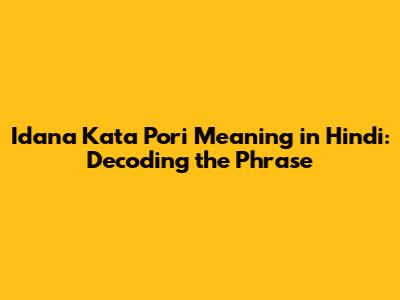 Idana Kata Pori Meaning: Unveiling Its Hindi Translation