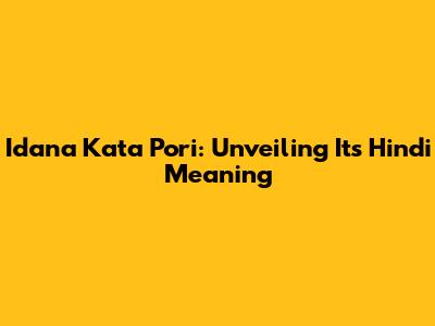 Idana Kata Pori: Unveiling Its Hindi Meaning