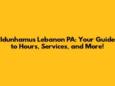 Idunhamu's Lebanon PA: Hours, Services, And More!