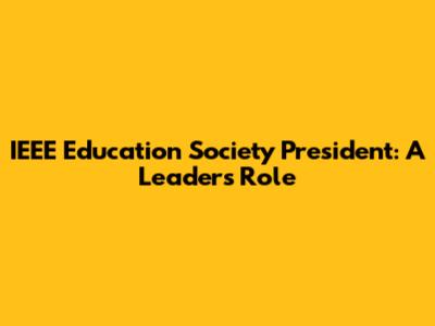 IEEE Education Society President: A Leader's Role
