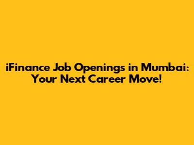 IFinance Job Openings In Mumbai: Your Next Career Move!