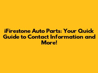IFirestone Auto Parts: Contact Info & More!