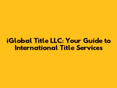 IGlobal Title LLC: Your Guide To International Title Services