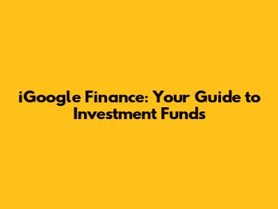 IGoogle Finance: Your Guide To Investment Funds