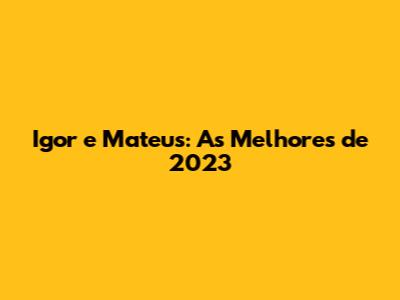 Em 2023, Igor e Mateus lançaram diversas músicas que se tornaram verdadeiros sucessos. Cada canção, com sua melodia cativante e letra envolvente, conquistou um lugar especial no coração dos fãs. Vamos destacar algumas das principais: